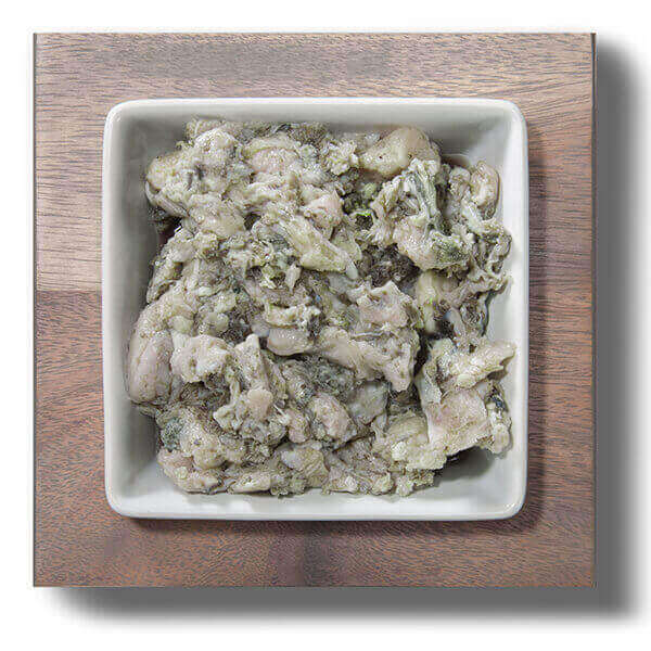 - Natürlich & unverarbeitet: Ungewaschener grüner Pansen mit vorverdauten Pflanzenresten.