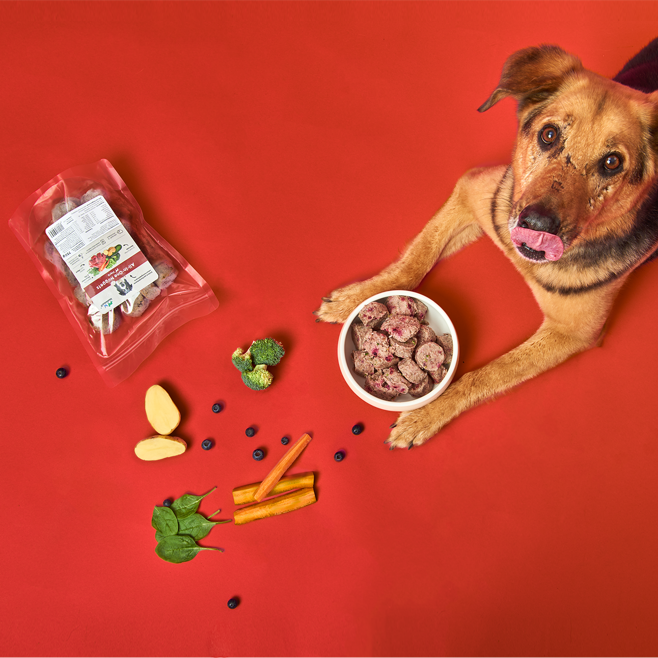 This product is a complete and balanced raw meat food for growing and adult dogs.