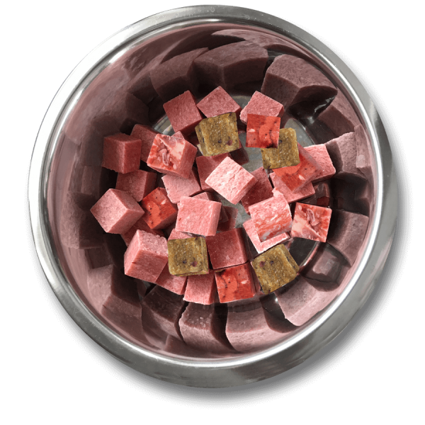 Muskelfleisch 50,5%; Innereien 16,5%; Knochen 13%; Gemüse 20%
