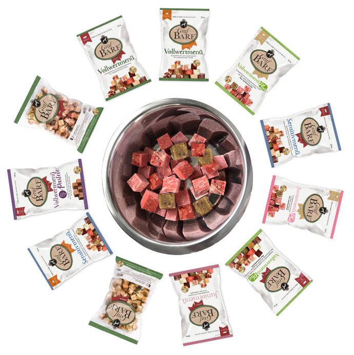 Mit 9 verschiedenen Graf Barf Rohfutterwürfeln