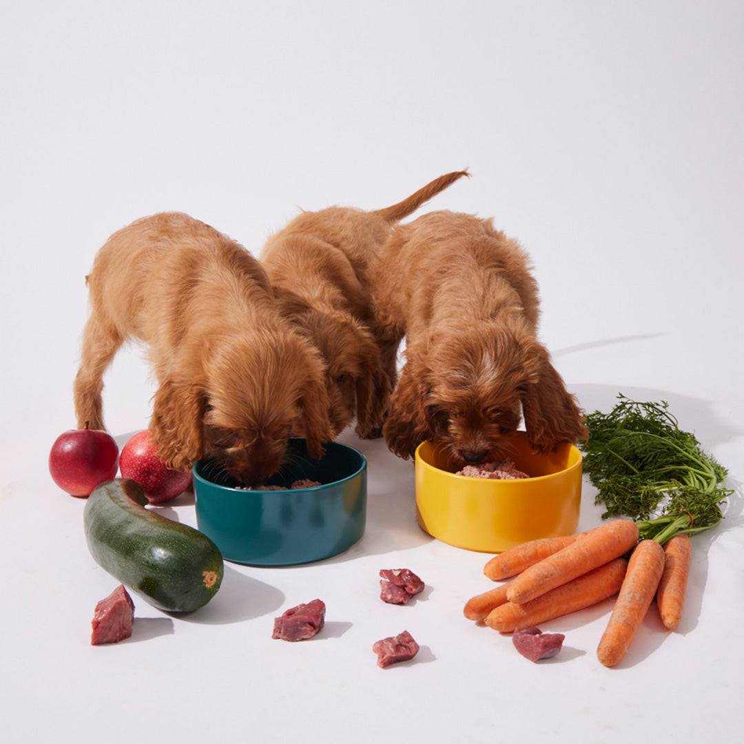 Als Orientierung kannst Du etwa 4–7 % des aktuellen Körpergewichts pro Tag füttern. Die Fütterung ist ab der 8. Woche möglich. Welpen sollten auf 3–4 Mahlzeiten täglich verteilt gefüttert werden, ab dem 6. Monat reichen in der Regel 2 Mahlzeiten aus.